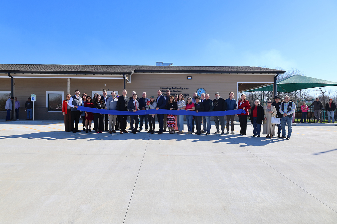 Leaders from the Cherokee Nation and the Federal Home Loan Bank of Topeka celebrated the grand opening of a new community center at the Sequoyah Heights Housing Addition for elder Cherokees in Tahlequah.