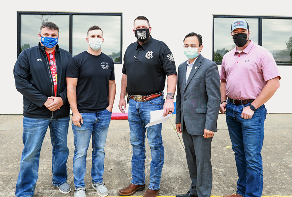 Cherokee Nation Principal Chief Chuck Hoskin Jr. and Deputy Chief Bryan Warner joined Adair County Tribal Councilors Shawn Crittenden and Canaan Duncan to present the checks to law enforcement officials. The donations were made from the Council of the Cherokee Nation’s allocation of annual law enforcement funds.