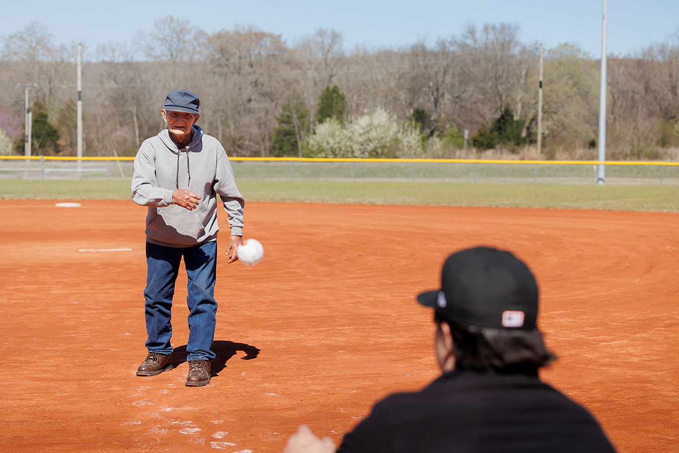 Cherokee Nation citizen Hubert Bunch threw out the first pitch. Bunch is a first-language Cherokee speaker and inspired generations of baseball and softball players in Greasy.