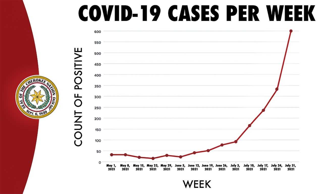 “The current swell in COVID-19 cases and related hospitalizations is driven by the spread of the highly contagious Delta variant of the COVID-19 virus according to our Cherokee Nation Health Services and Public Health teams, both of which are working around the clock to address this situation,” said Principal Chief Chuck Hoskin Jr. “The Delta variant accounts for over 80 percent of the tribe’s new COVID cases. A continued increase in cases could mean our health system is required to redirect health care staff from outlying health centers to assist in caring for hospitalized COVID patients at W.W. Hastings Hospital. Not only is COVID-19 putting added pressures and risks on our hospital, health centers and our amazing health care team tasked with treating COVID patients, but the resurgence once again threatens the overall well-being of the Cherokee Nation and the most vulnerable among us, including our Cherokee elders. We must commit ourselves to following medical science, facts, and compassion as we respond to the surge and do everything within our power to protect our Cherokee communities.”