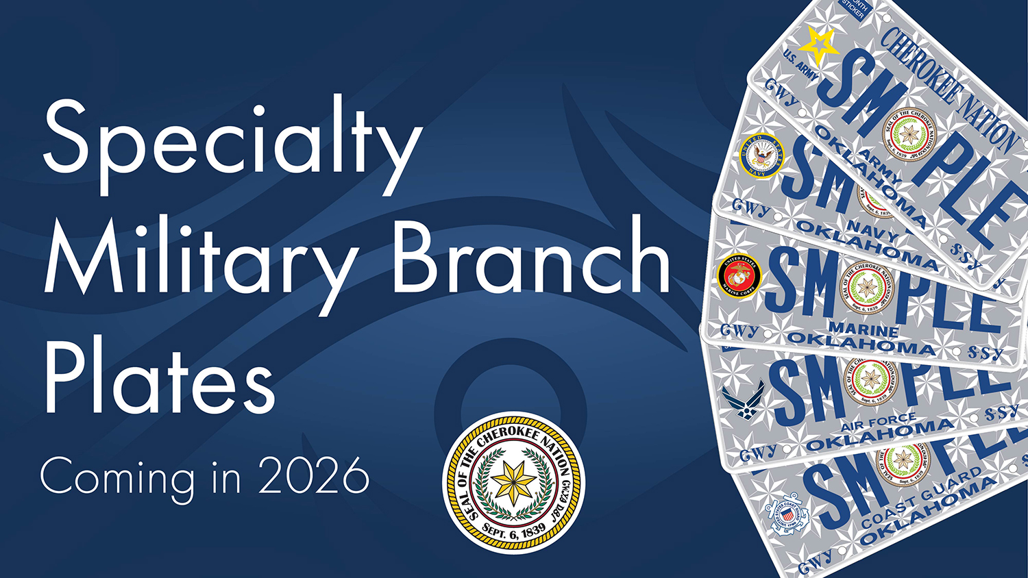 To learn more about the new Military Branch Plates, contact the Cherokee Nation Tag Office at (918) 453-5100.