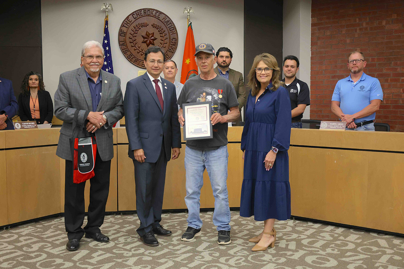 The Cherokee Nation honored Larry Dean Blevins, of Tahlequah, with the Medal of Patriotism during the April meeting of the Council of the Cherokee Nation.