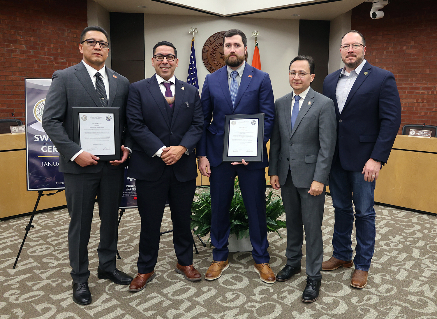Also during the ceremony, three Deputy Marshals received the Cherokee Nation Lifesaving Award, presented by Marshal Mead, Chief Hoskin, and Deputy Chief Warner.